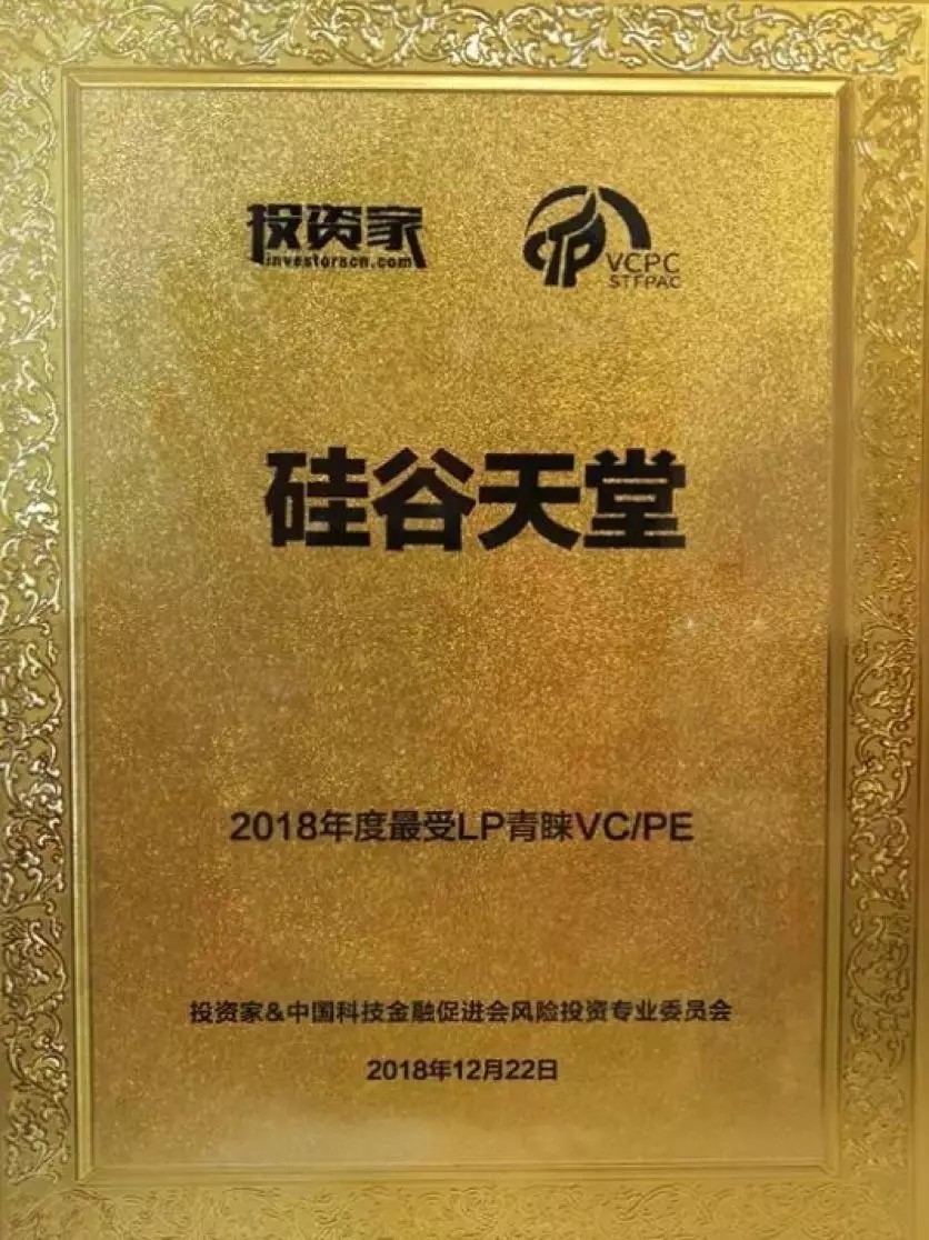 2018年12月21日-22日,由投資家網(wǎng)主辦的“投資家網(wǎng)·2018中國股權(quán)投資年度峰會”在北京舉行,并發(fā)布2018中國股權(quán)投資年度系列榜單。天堂硅谷控股母公司硅谷天堂榮獲“2018年度最受LP青睞獎”。